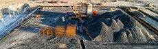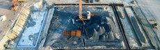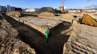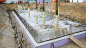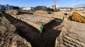 Drei Streifenfundamente umgeben die Hallenhauptfläche
