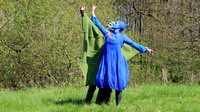 Als ich in meinem Kämmerchen saß und darüber dachte und las, hat mir jemand den Text von Herrn Wald und Frau Wasser ins Ohr geflüstert. Ich habe alles aufgeschrieben, zwei Kostüme machen lassen, eine klassische Tänzerin überzeugt im Wald zu tanzen. Wir haben uns vorgestellt und durften bleiben.Seitdem sind wir mit dem Verein Trinkwasserwald als Frau Wasser und Herr Wald auf Reisen. Wundervoll und wahr."
